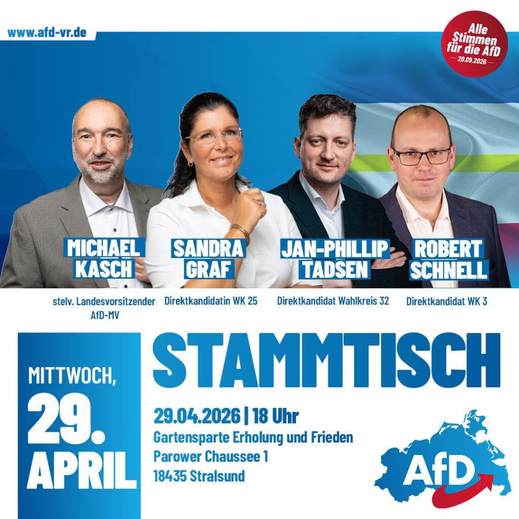 Tommy Thorman, unser Kandidat zur Landtagswahl 2026 für den Landkreis 33 Vorpommern-Rügen IV, ist auch wieder im Mai wider unterwegs. Schaut vorbei und kommt mit uns ins Gespräch. Wir freuen […]