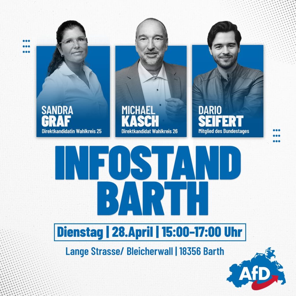 📢 Infostand in Barth: Politik hautnah erleben! Kommen Sie vorbei und reden Sie mit! Am kommenden Dienstag, den 28. April 2026, sind wir direkt vor Ort in der Barther Innenstadt, […]